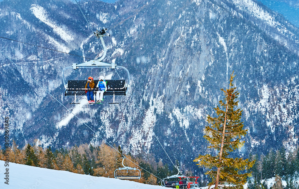 The Chairlift On Snowstorm Feuerkogel Mount Ebensee Salzkammergut Austria Stock Photo Adobe Stock